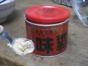 (5) 大さじ半分程の鰹だしの素(顆粒)を入れる。