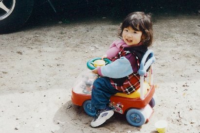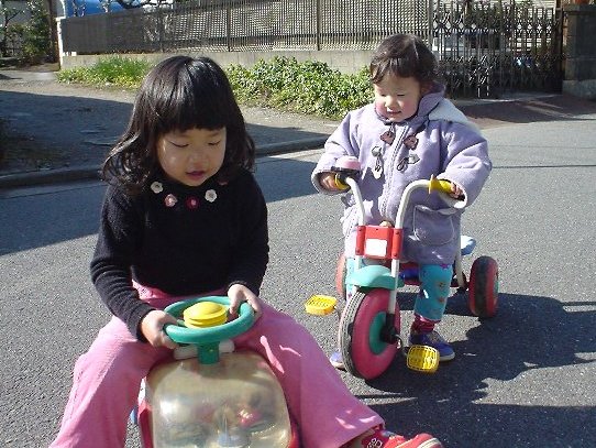 H17.3.27 一番下の次女は、上2人の時と大違いの怖いもの知らずの無謀な性格です。自転車で出かける時には、私の後に乗せてもらおうと走ってきて、そのまま自転車に激突したり、お風呂で体を洗ってやる時に、私のあぐらの上に座るのですが、遠慮無くドカンと座るので、私はいつも恥骨が折れるかと思う程の激痛と戦っています。
