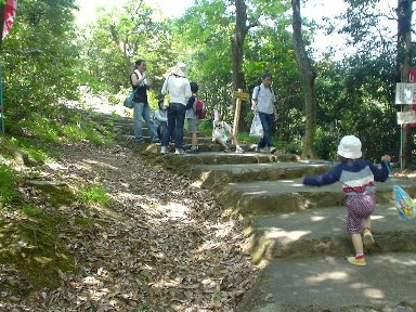 写真は、私達家族が金華山を登る途中、下山して来た彼ら家族と会った時のものです。どの登山道を通るかを話していませんでしたから、これも偶然な事です・・・。