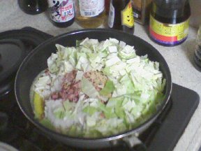 (5) 他に、ネギ等の野菜を入れたりもします。この日はキャベツを入れてみました。