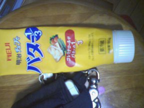 (1) 熱したフライパンに大さじ5〜6杯程のバター(僕は好んでチューブものを使います)を入れます。